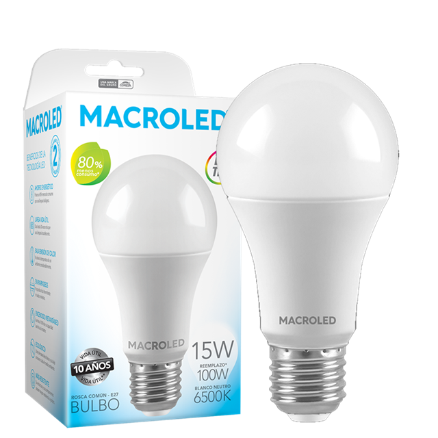 Lámpara led A60 15w e27 luz fría 6500k (*)