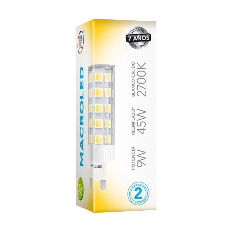 Lámpara bipin de leds 9w g9 220v luz blanco calido
