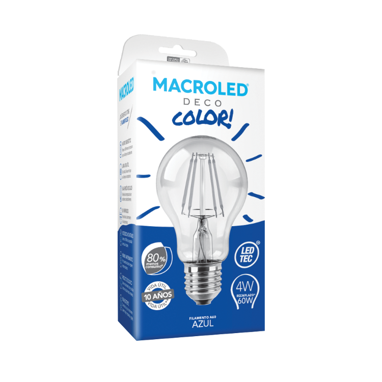 Lampara con filamento de led bulbo a60 color azul 4w E27