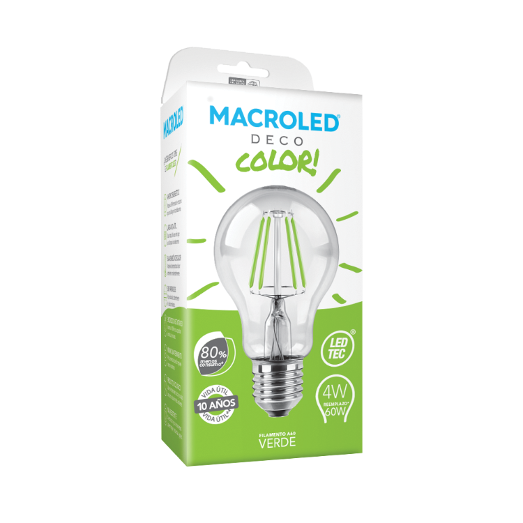 Lampara con filamento de led bulbo a60 color verde 4w E27