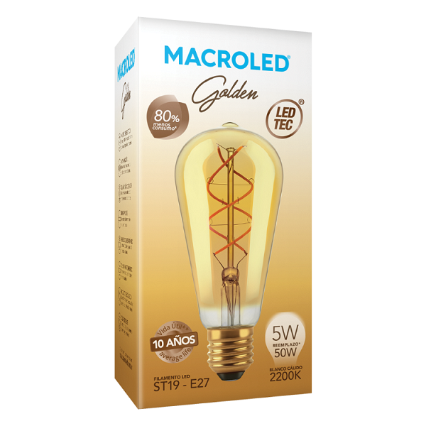 Lampara con filamento de led bulbo st19 5w e27 ambar luz calida