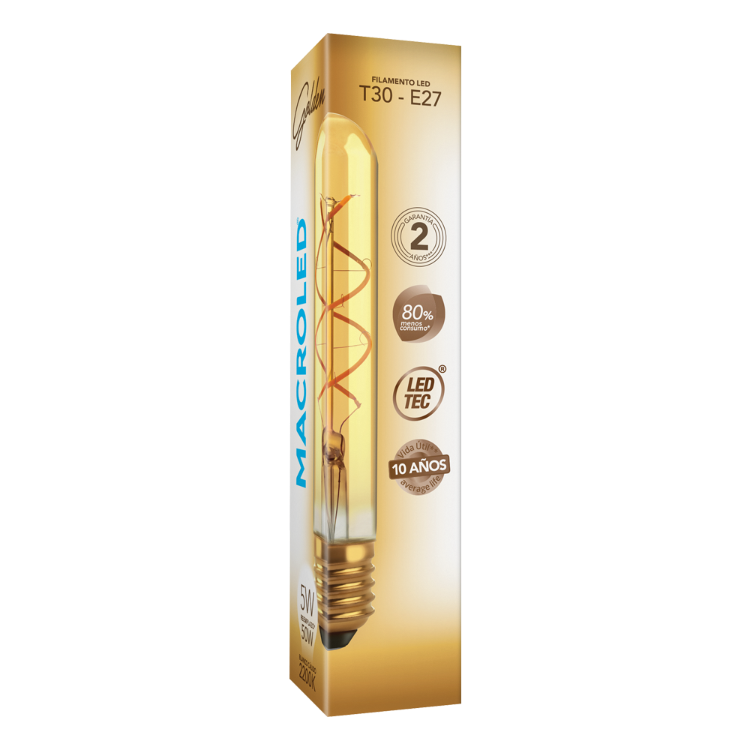 Lampara con filamento de led bulbo t30 2w e27 ambar luz calida