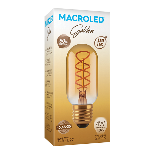 lampara con filamento de led bulbo t45 4w e27 ambar luz calida
