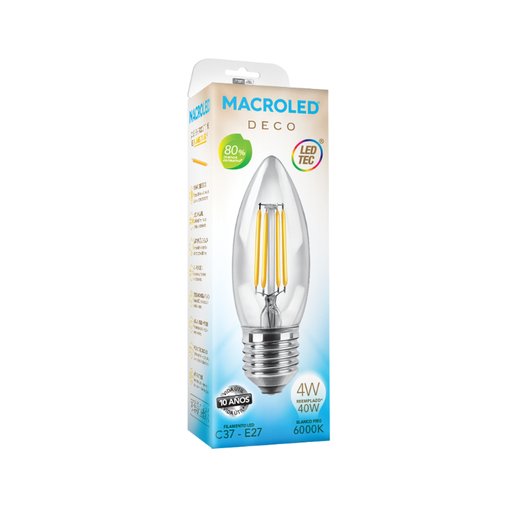 lampara con filamento de led vela 4w e27 luz fria