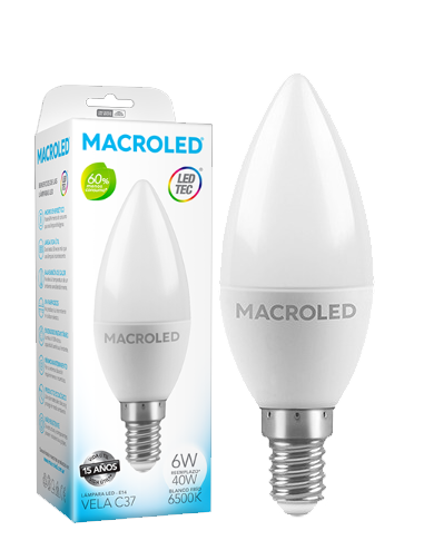 lampara de led vela 6w e14 luz dia