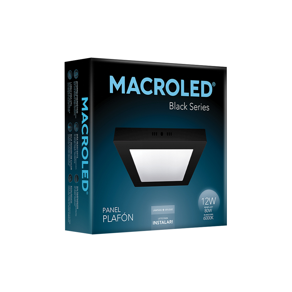 plafon de led cuadrado NEGRO 12w para aplicar luz dia