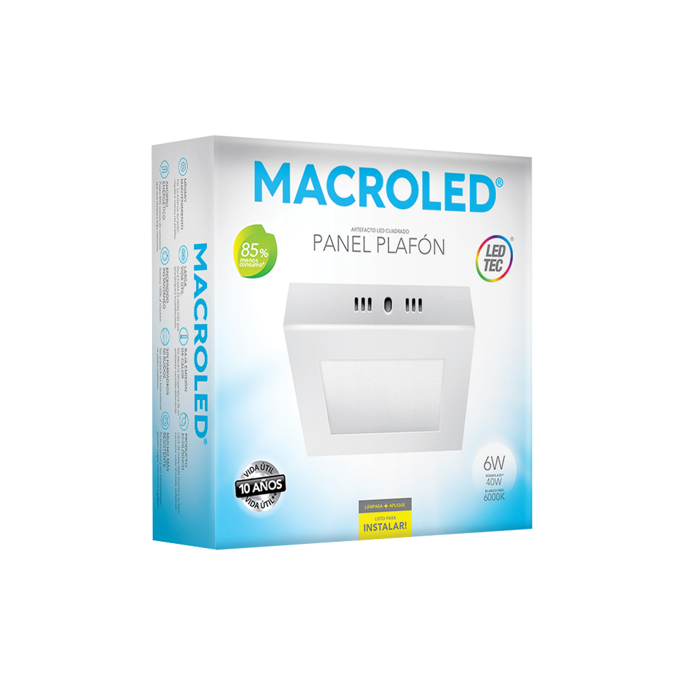 plafon de led cuadrado blanco 6w para aplicar luz dia