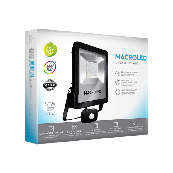 proyector exterior de led 50w luz fria con sensor de movimiento