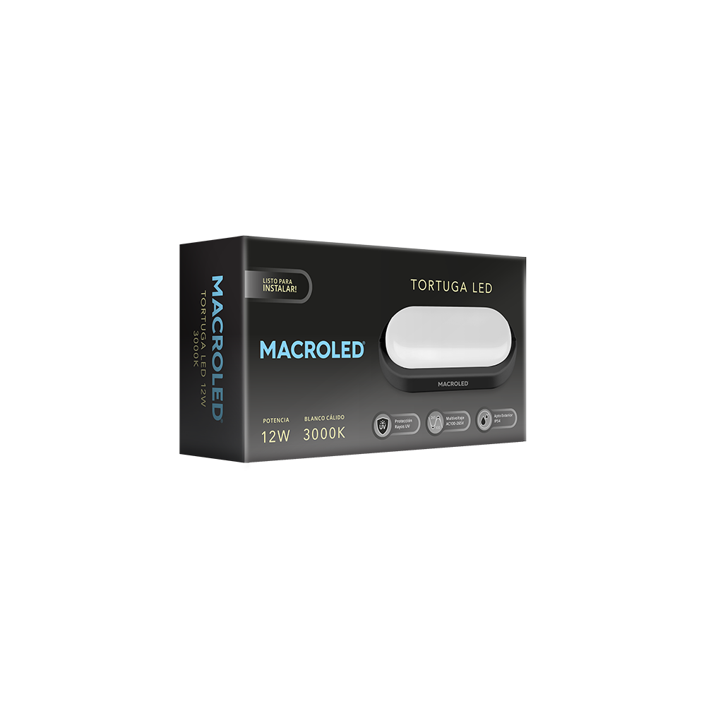 tortuga leds ovalada negra 12w ip54 luz blanco calido