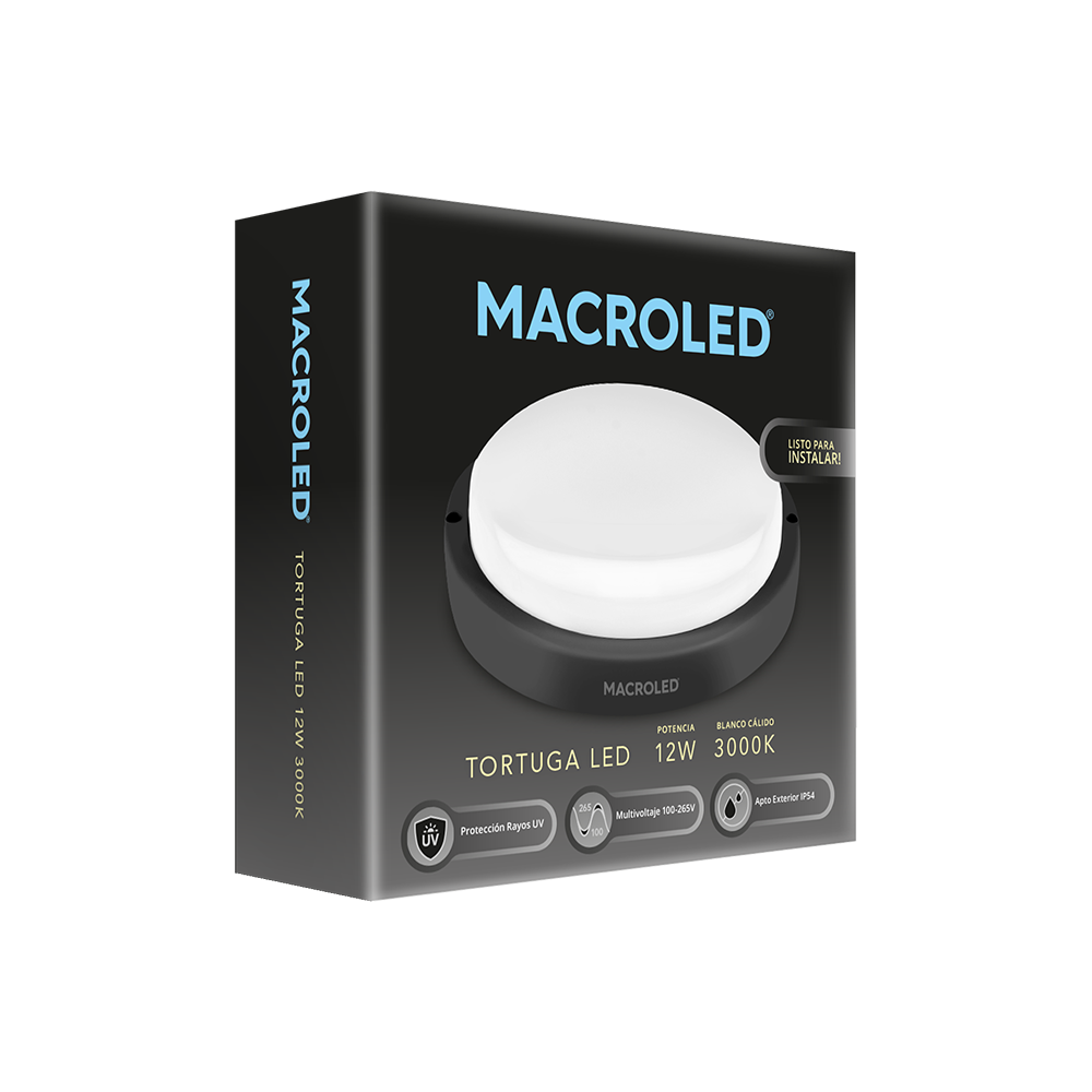 tortuga leds redonda negra 12w ip54 luz banco calido