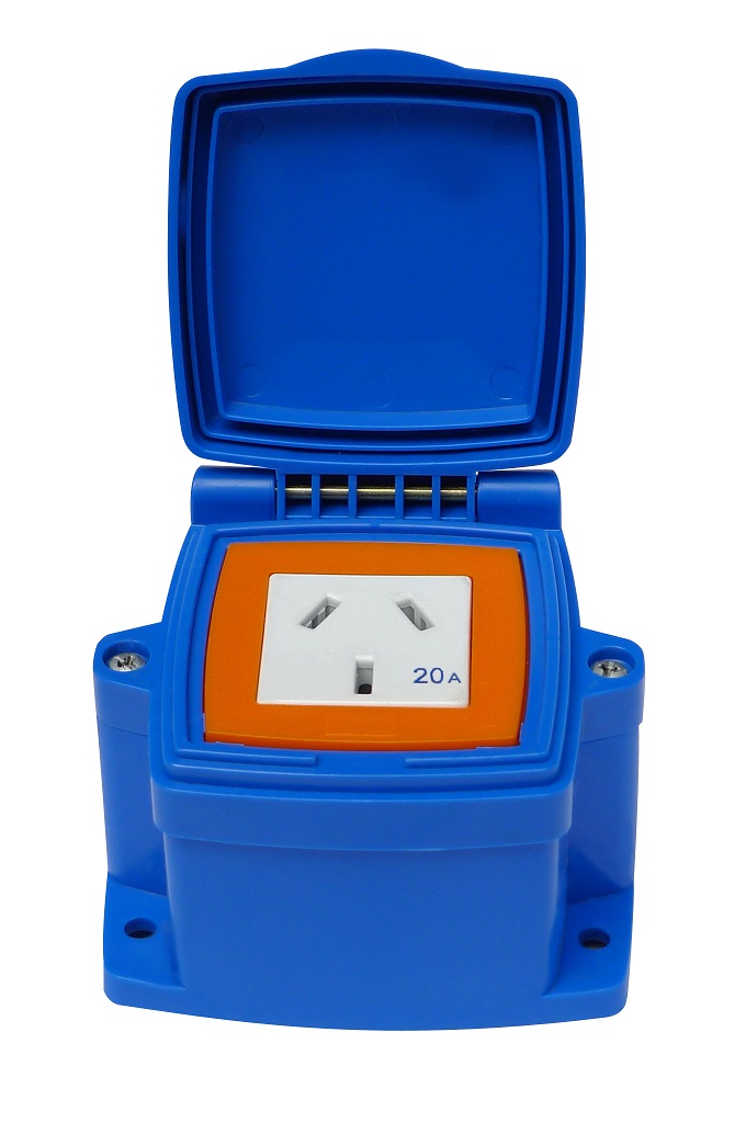 caja capsulada con un toma con neutro 20amp color beige