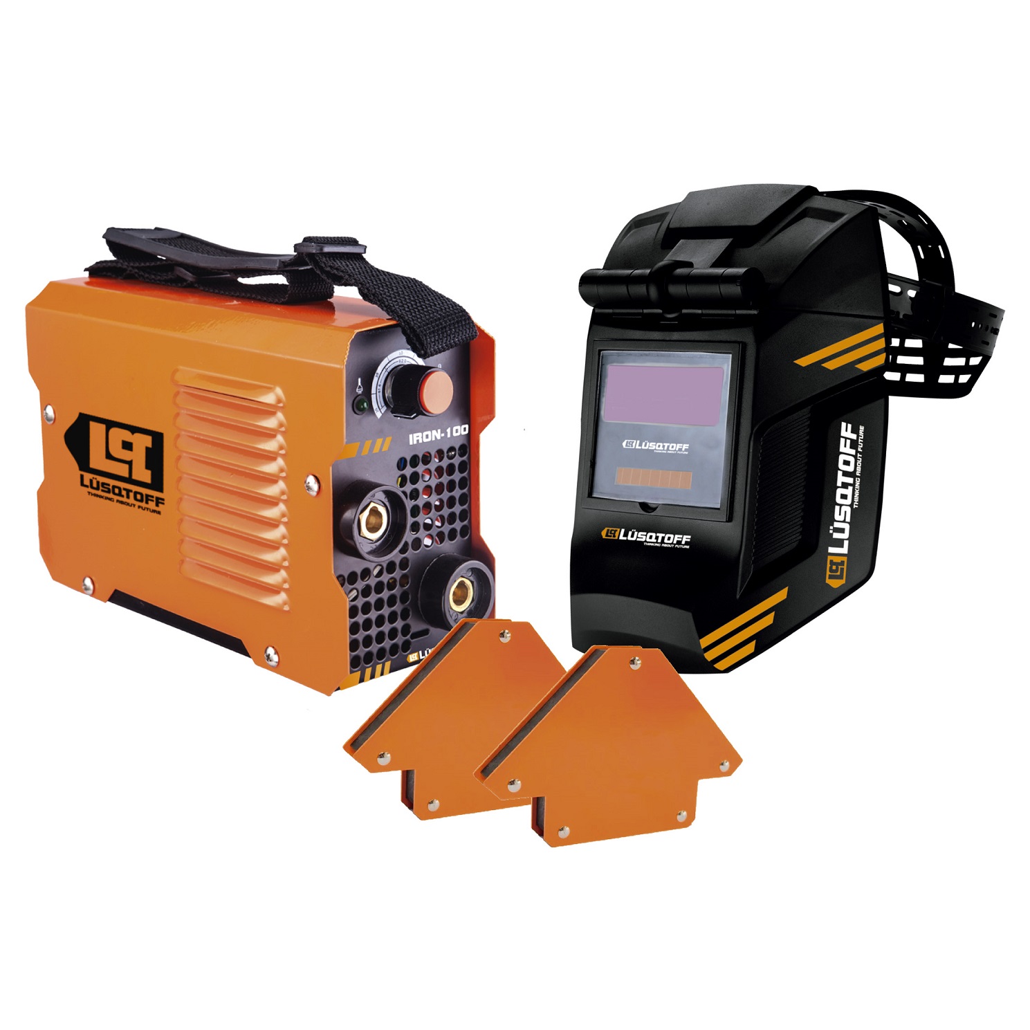 kit soldadora inverter iron-100 + mascara soldador st-1x + 2 escuadras magneticas