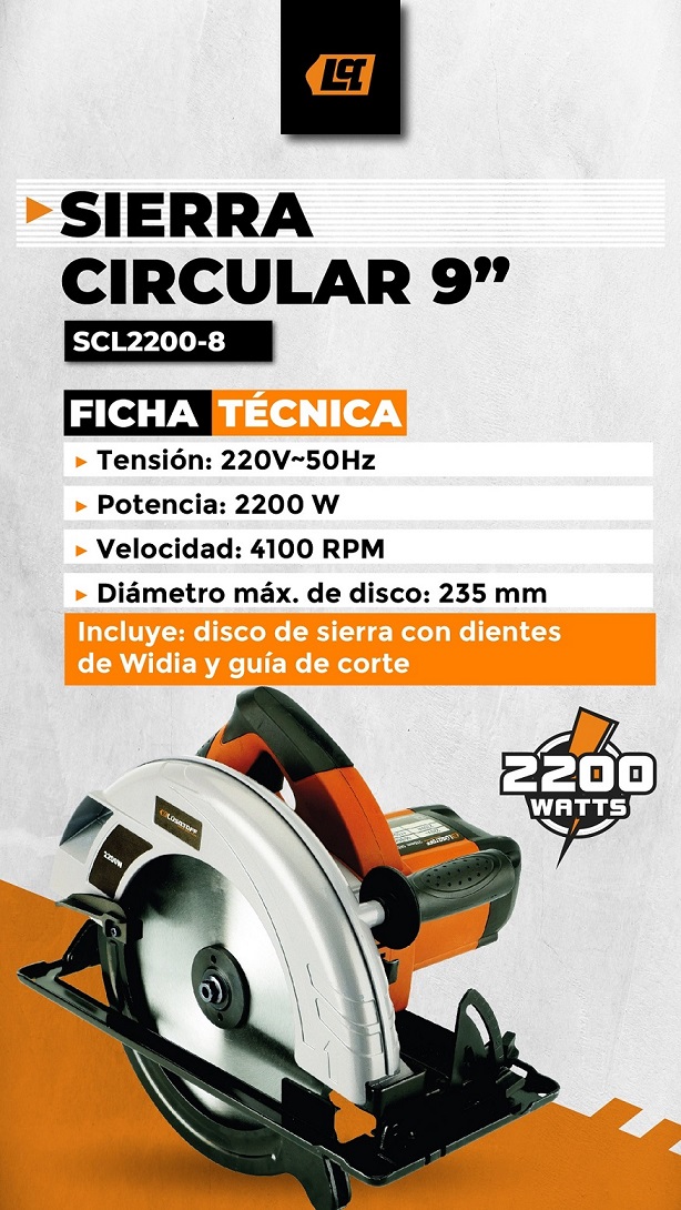 sierra circular 2200w 4100 rpm 9". 220v-50hz