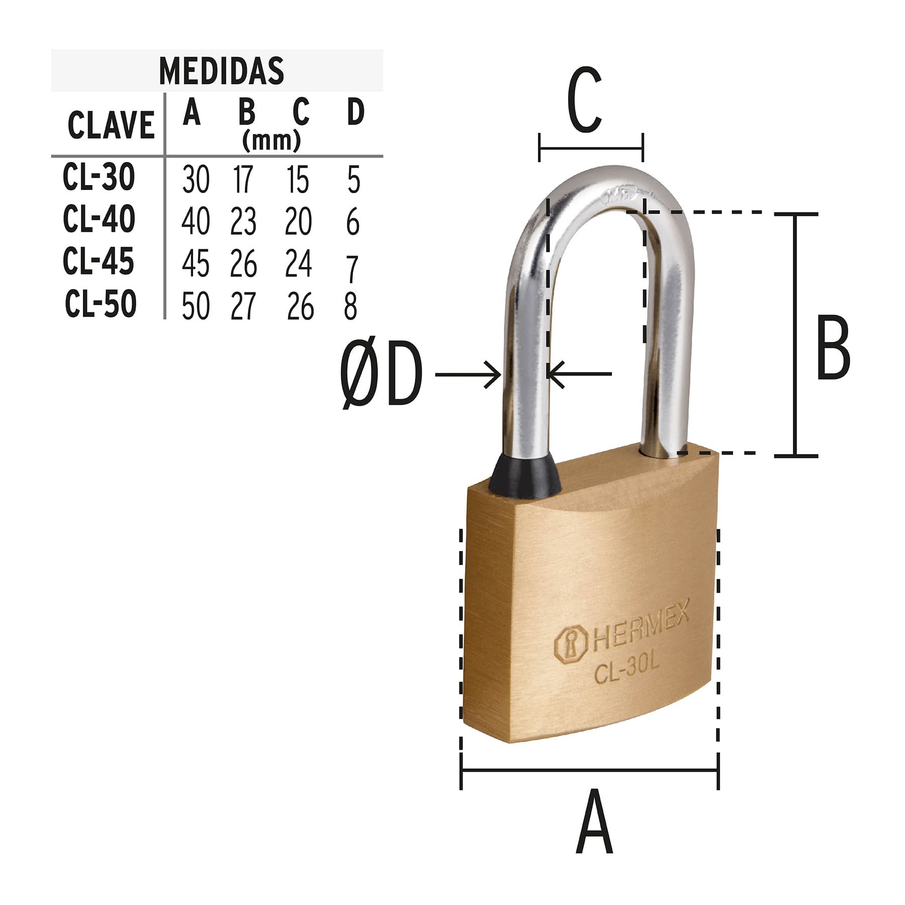 candado laton 40mm aro largo
