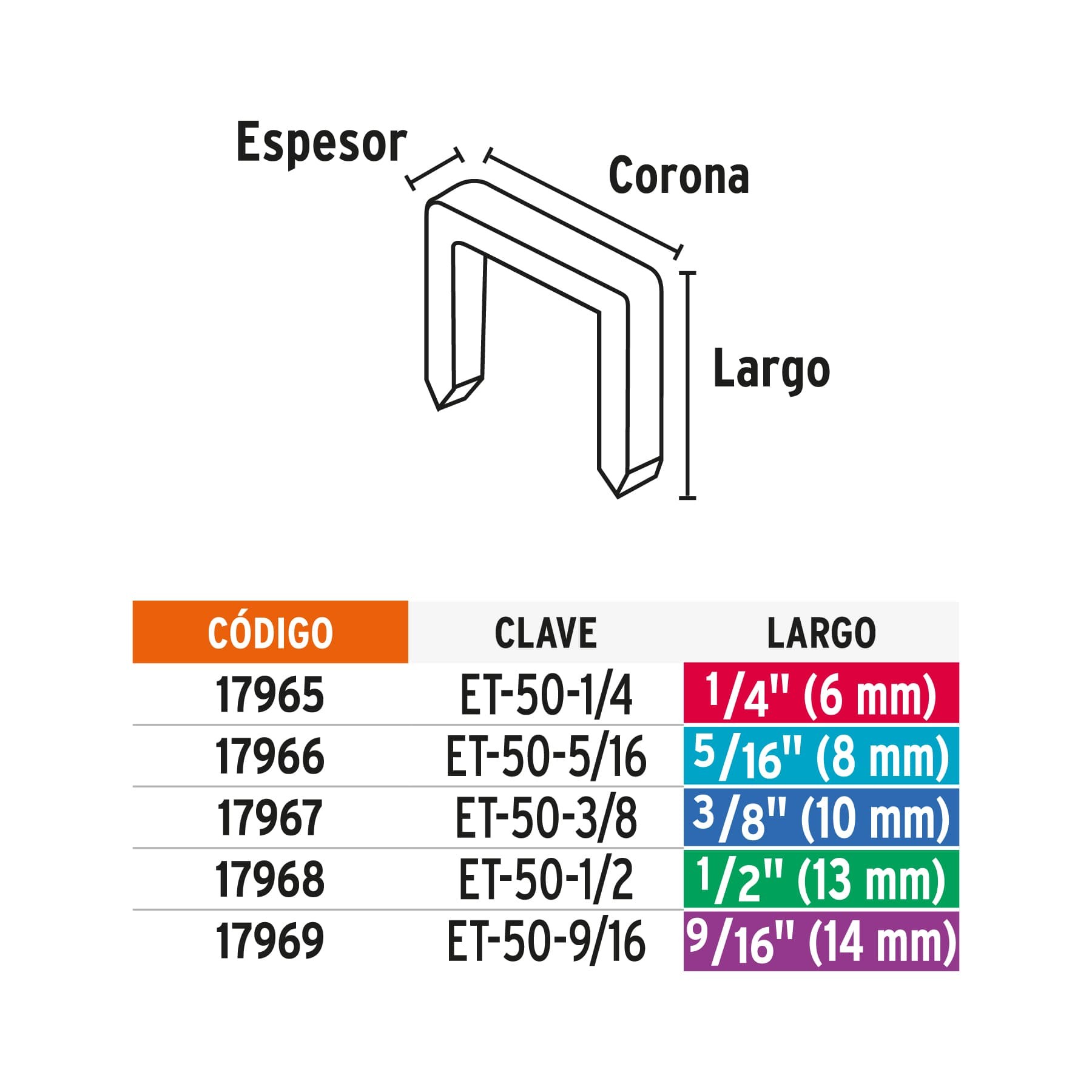 Caja de 1000 grampas. Corona 10.7mm, Larga: 8mm
