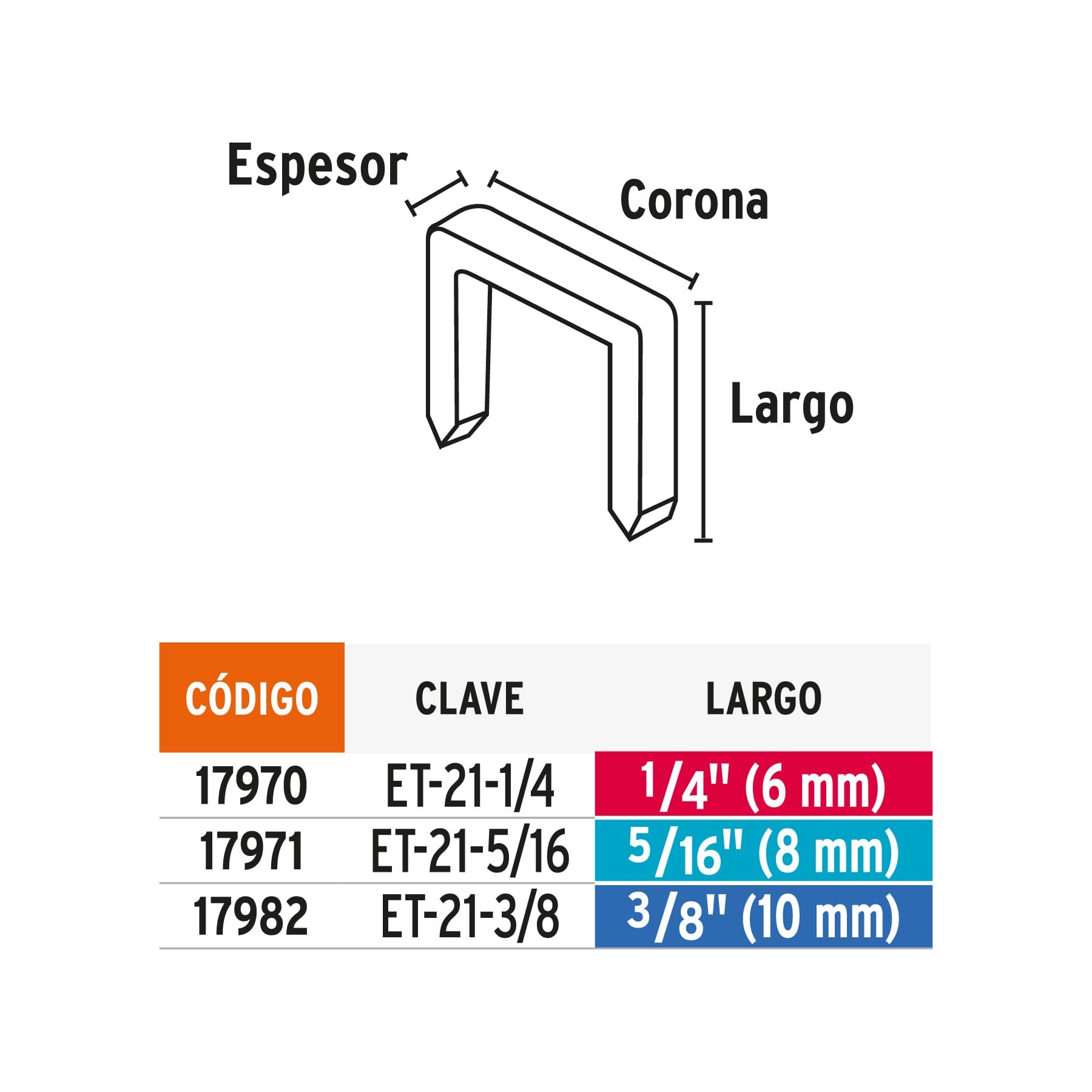 Caja de 1000 grampas. Corona 11.3mm, largo: 6mm