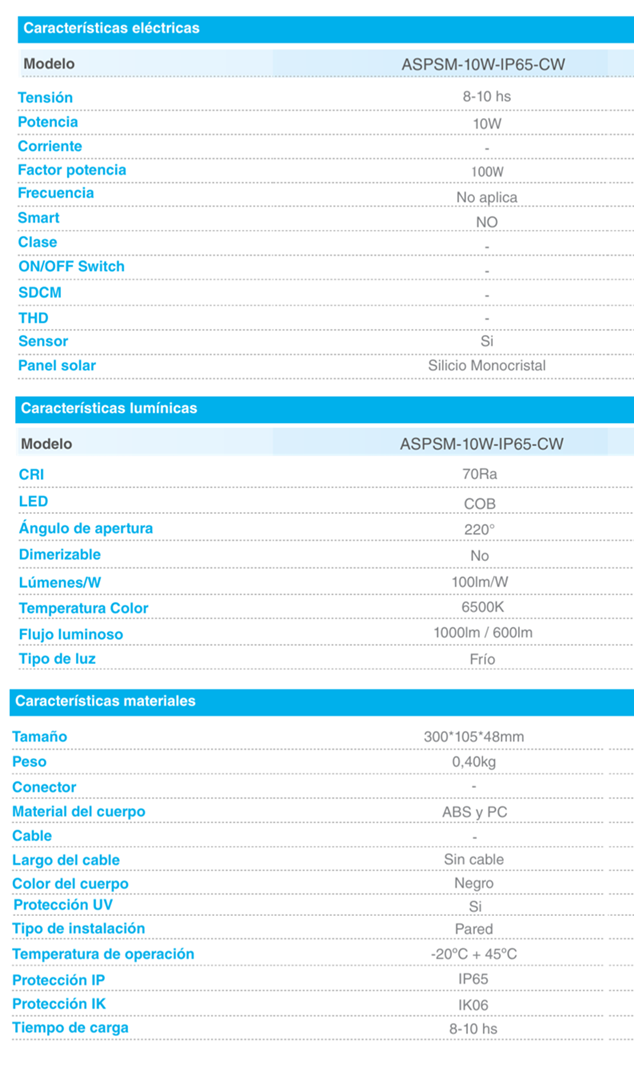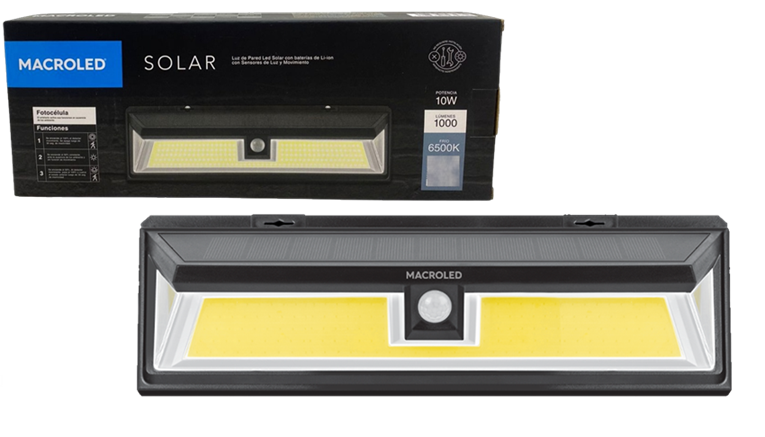 Artefacto Solar de pared 10w con Sensor de Movimiento y Fotocontrol. Luz Dia