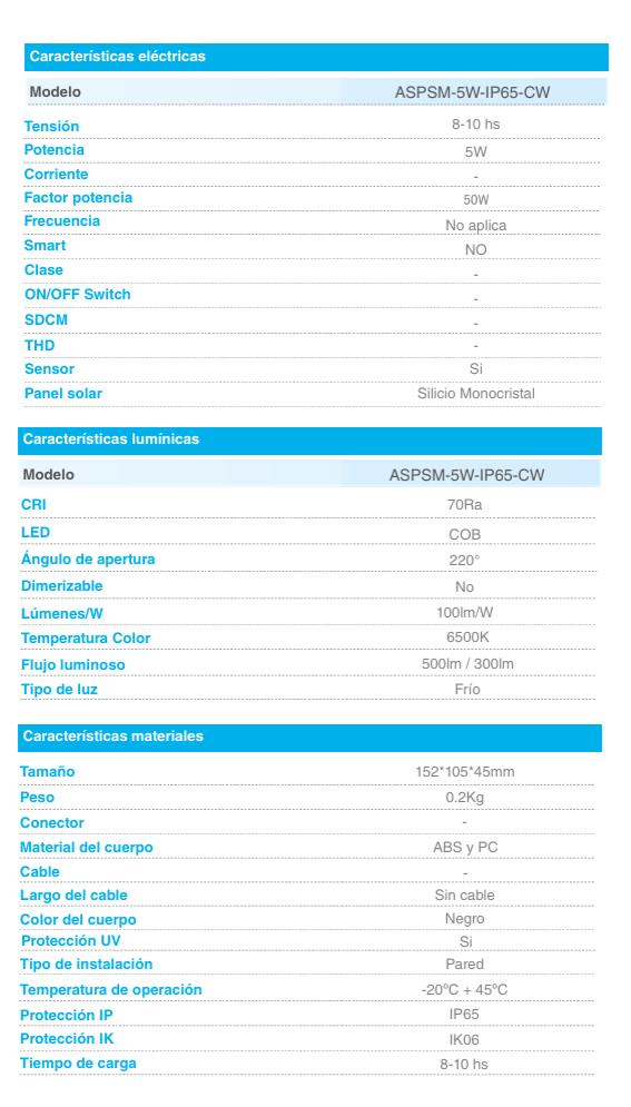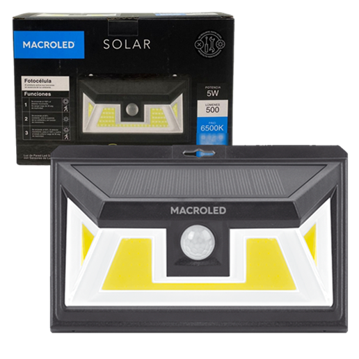Artefacto solar de pared 5w con sensor de movimiento y fotocontrol. Luz dia