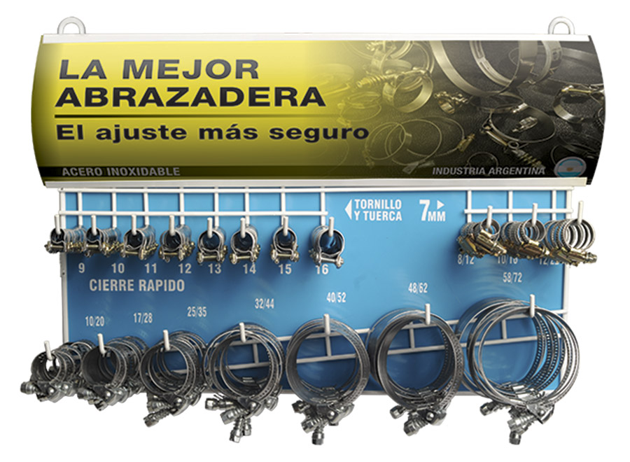 exhibidor de abrazaderas cierre rapido nº 5 completo contiene 202 unidades