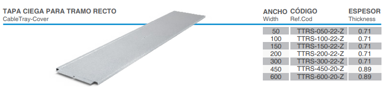 Tapa para tramo recto 300mm*50mm 0.7zg