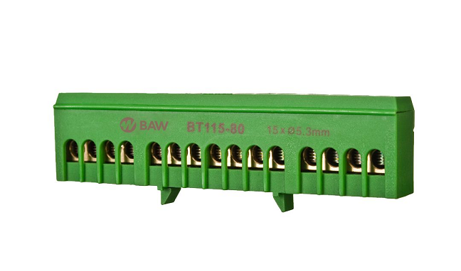 Repartidor modular 1P Tomas: 15 (1,5-6mm²) 108x14x27mm. VERDE