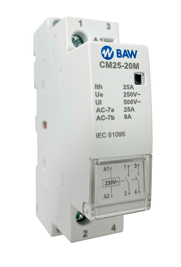 Contactor modular 2p-25amp 2no 230v a-m