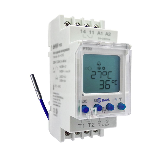 Termostato digital, control y alarma. Rango: -25°C a +130°C