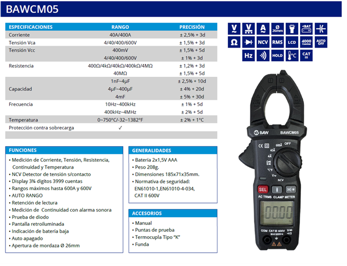 Pinza multimétrica digital TRUE RMS 400 cuentas