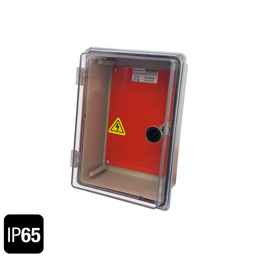 Caja 200*300*150 con bandeja metalica y puerta transparente.