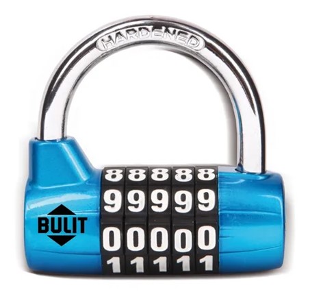 Candado alta seguridad combinacion 5 cifras 65mm. Azul