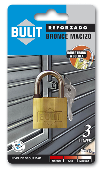 Candado bronce reforzado 3 llaves 25mm