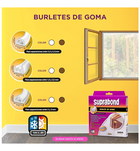 Burlete autoadhesivo perfil e 9*4mm. Blanco