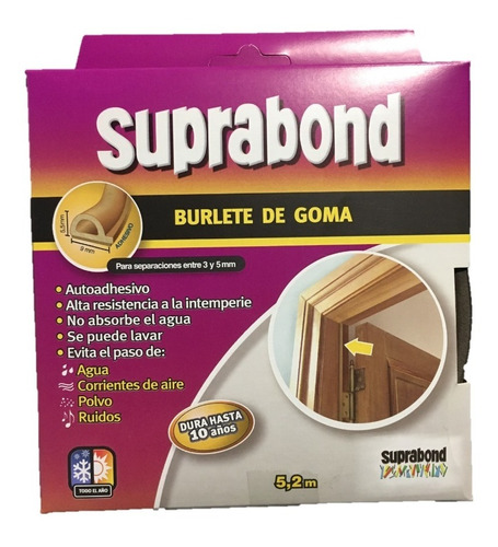 Burlete autoadhesivo perfil p 9.5*5.5mm. Marrón