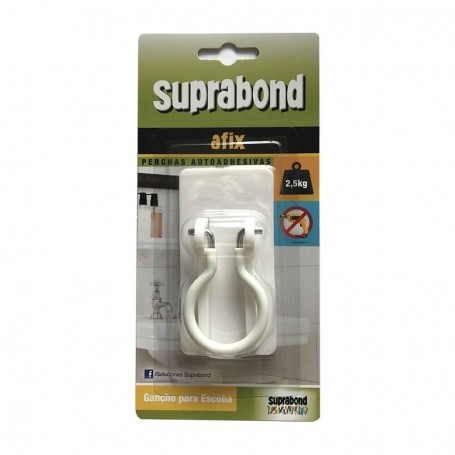 Gancho autoadhesivo sujeta escoba. Color blanco