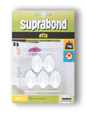 Percha autoadhesiva ovalada blanca 35mm. Blister por 5 unidades