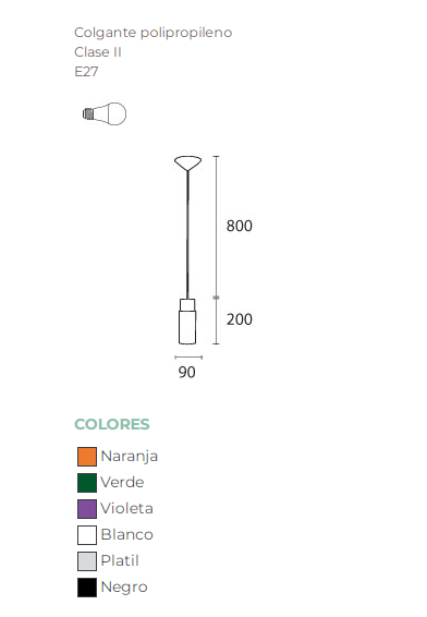 Lámpara colgante polipropileno pantalla tubo 1 luz e27