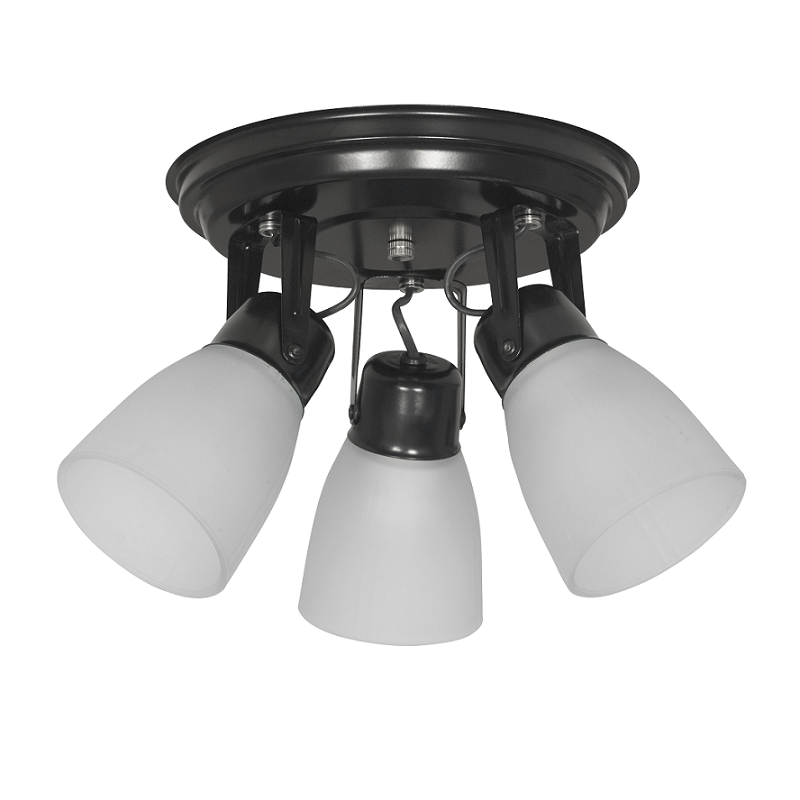 Spot plato con tulipa vidrio "garra" 3 luces. Negro