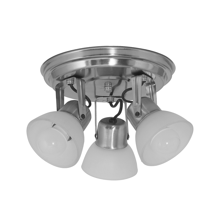 Spot plato con tulipa vidrio "francia" 3 luces. Plateado