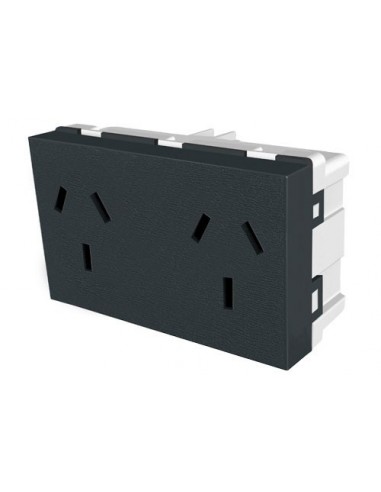 Modulo toma doble bipolar con neutro 10a color negro. Linea PLATINUM.
