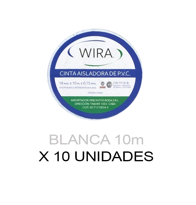 Cinta aisladora blanca de pvc 10 mts por 10 unidades
