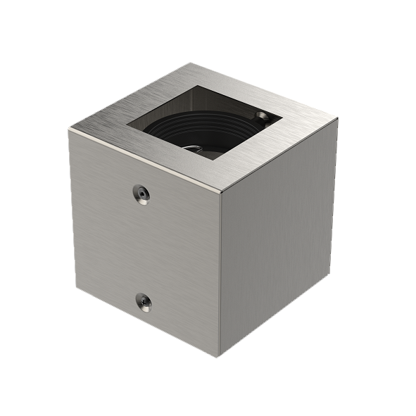 Plafón exterior para dicroica movil cuadrada gu10. Color cromado