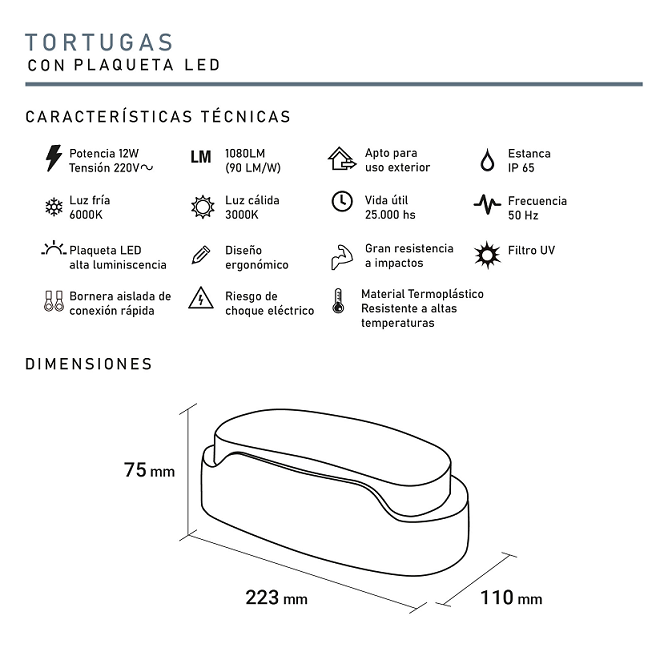 Tortuga de led ip65 policabonato negro