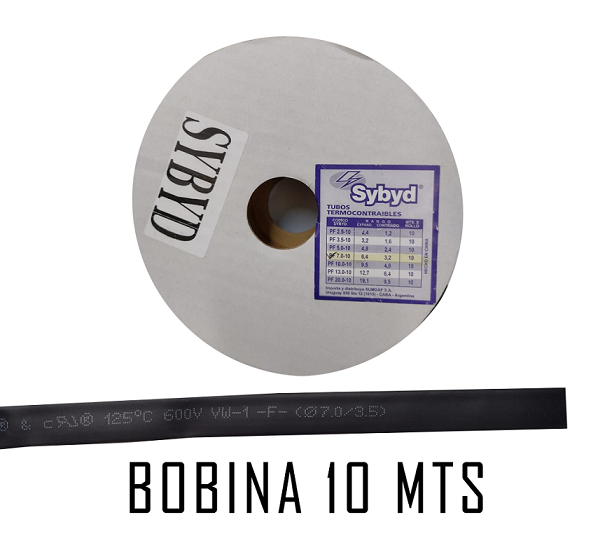termocontraible de 6.4mm a 3.2 bobina de 10mts