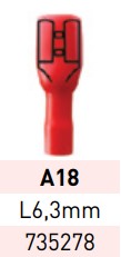 Terminal preaislado hembra l-6.3mm rojo.a18