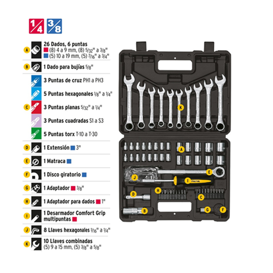 Juego de llaves tubo y accesorios. 70 piezas con maletin