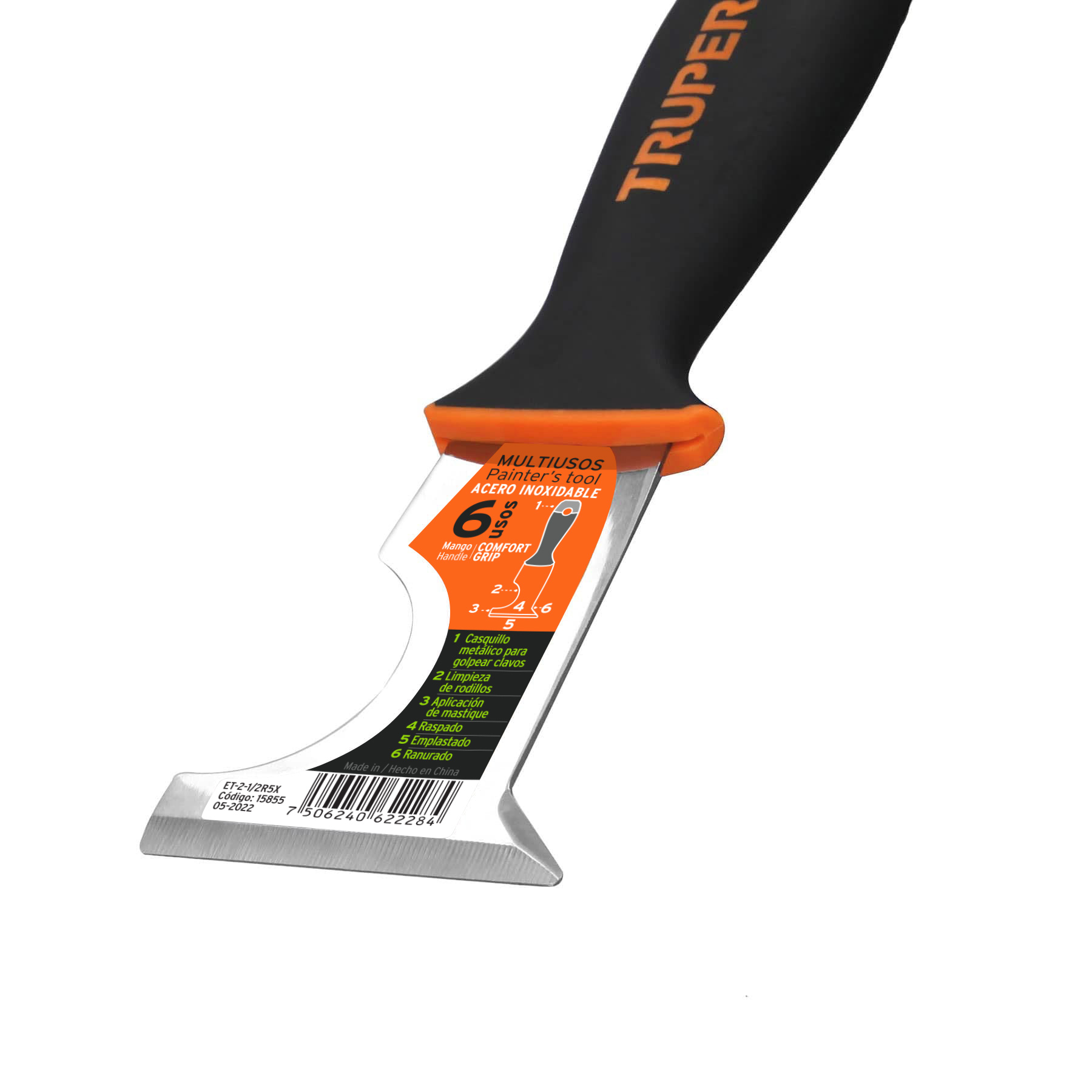 Espatula flexible de 6 usos, ancho 2 1/2". Hoja de acero inoxidable.