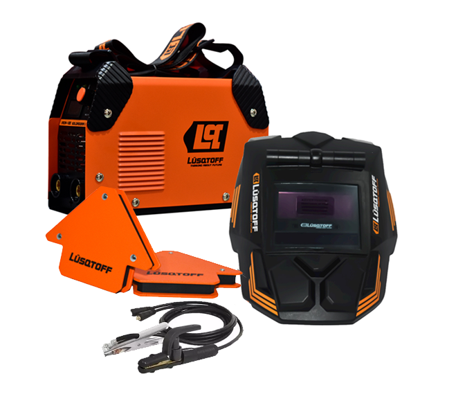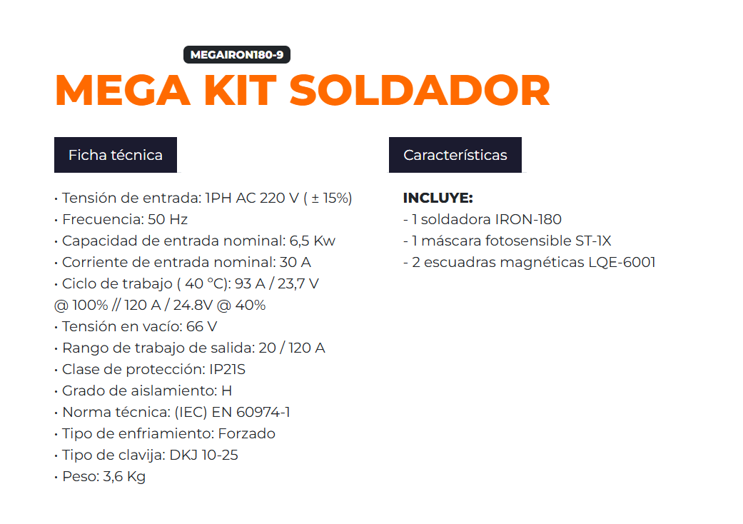 Kit soldadora invert. iron-180 + 2 escuadras mag + máscara (*)