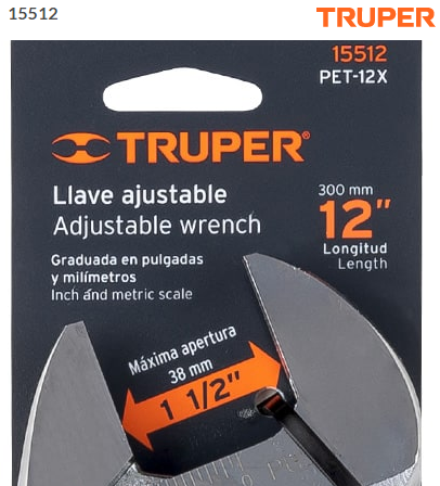Llave ajustable de 30cm/12" cromada con mango pvc