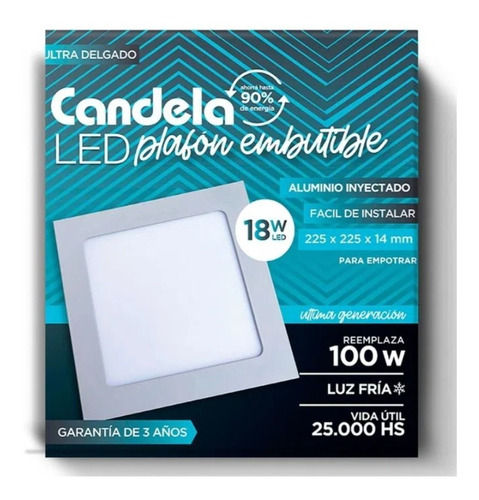 plafon led cuadrado 18w embutir luz dia