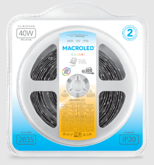 Tira 2835 60 leds-5mts. Dc12v - 8w ip20 color amarillo